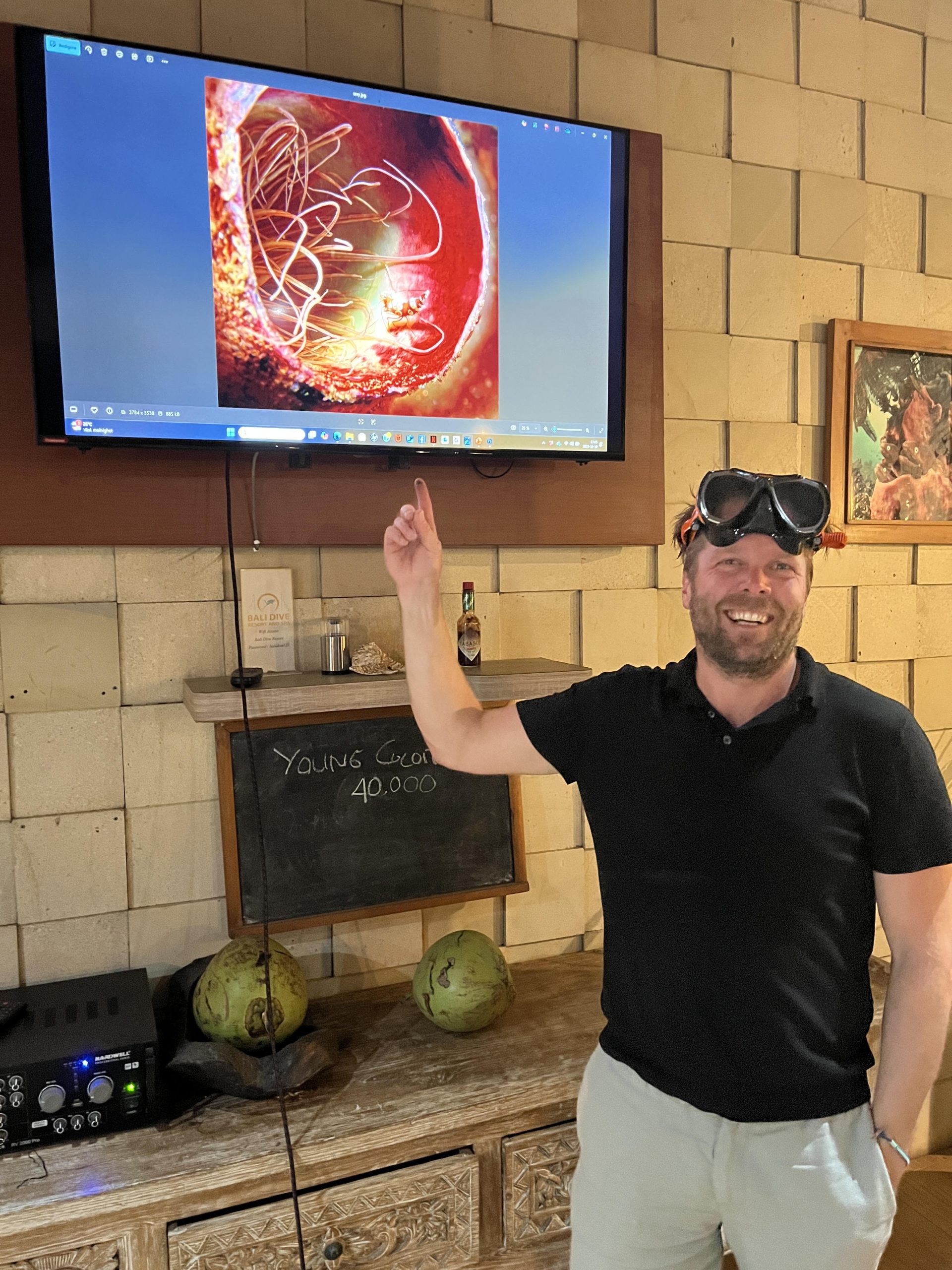 Sista kvällen med gänget avslutade vi med våran fototävling: vinnaren denna gång blev Mikael Landerblad, med sin fantastiska bild på en Sexy shrimp i en rör koral.